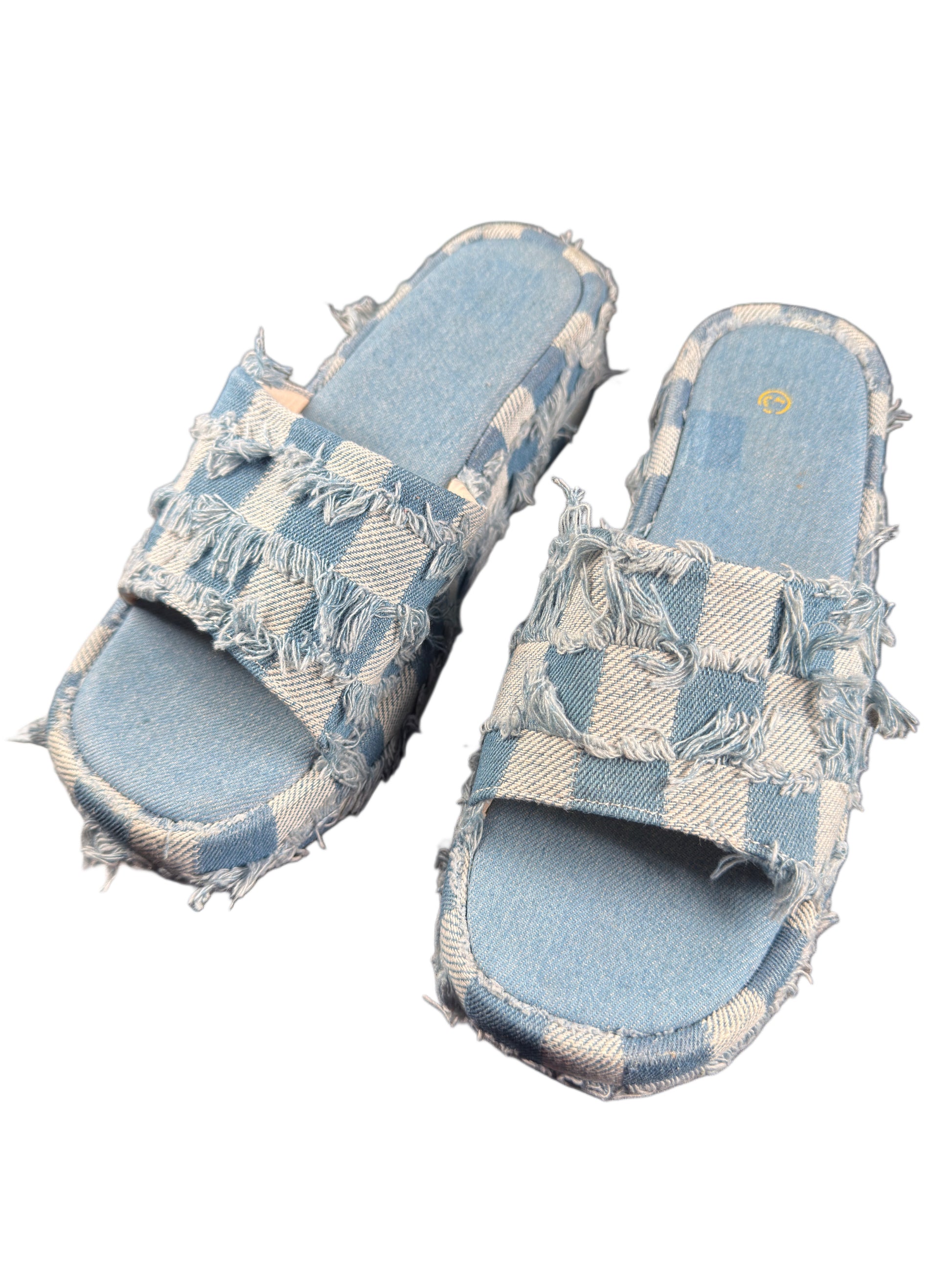 One of one 90s checkered dead stock denim dream mules. Never worn.