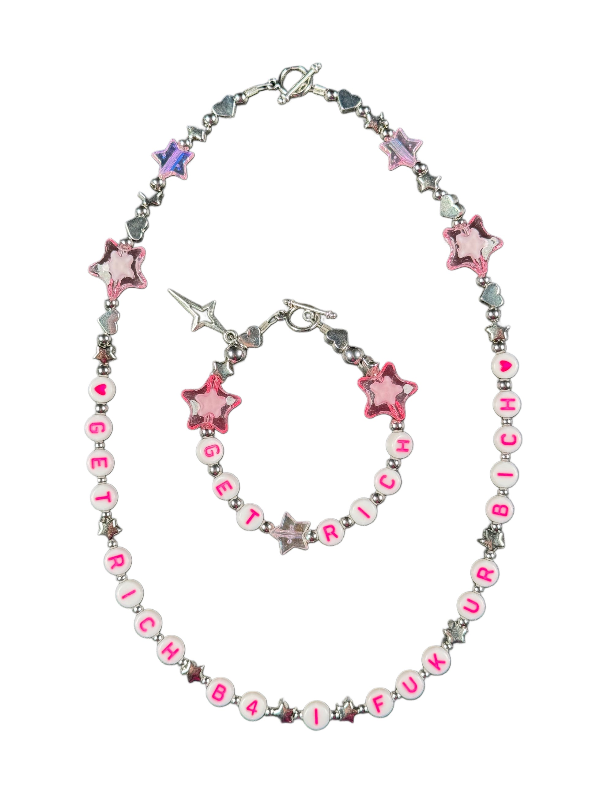 The iconic Get Rich Necklace and Bracelet Set. Save $10 when purchased together.